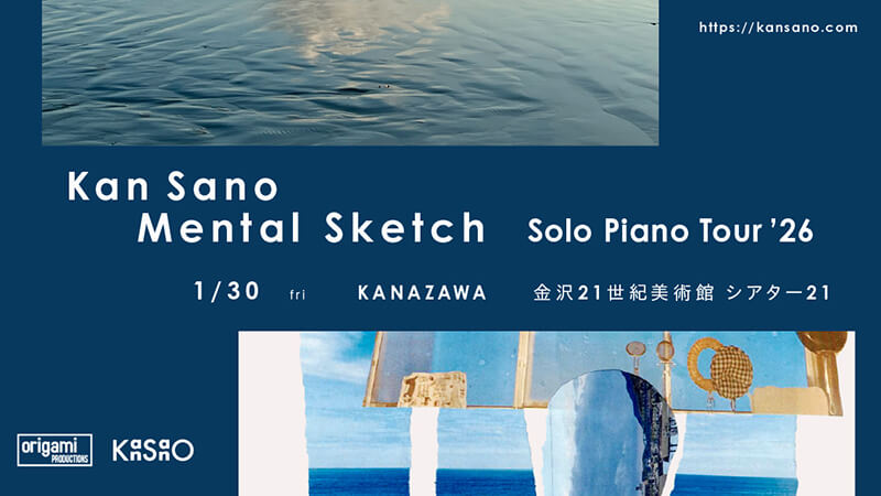 コラム『観ずる日々』でもおなじみ、金沢出身のアーティスト“Kan Sano”さんによるピアノ・インストゥルメンタル・アルバム『Mental Sketch』のリリースツアー開催が決定!石川県では2026年1月30(金)、金沢21世紀美術館での公演が予定されています。