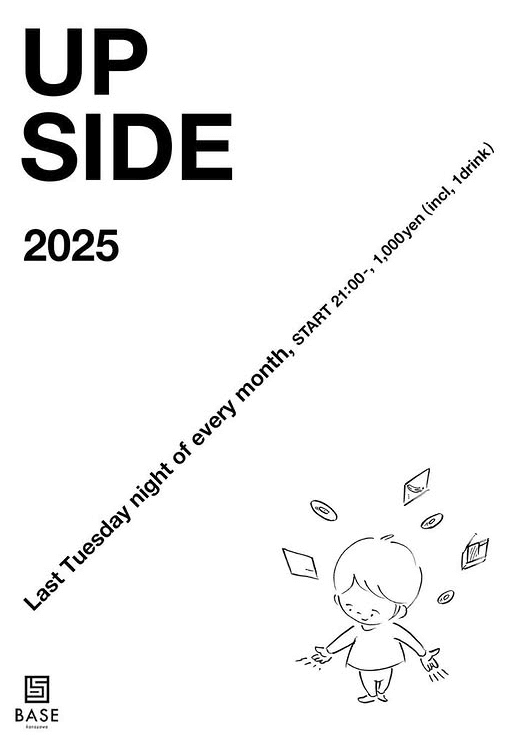 UP SIDE PARTY INFO Kanazawa Club Night Party UP SIDE DAY:2025.09.30 Tue. START:21:00 DOOR:1,000JPY(incl,1drink) VENUE:BASE