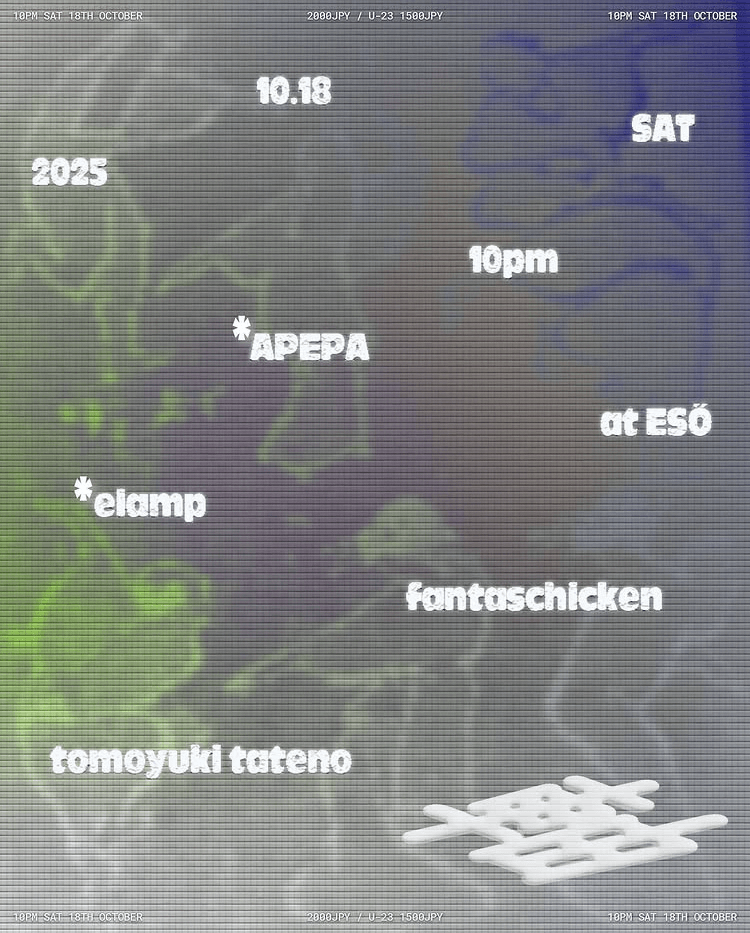軸 PARTY INFO Kanazawa Club Night Party 軸 DAY:2025.10.18 Sat. OPEN:22:00 DOOR:2,000JPY U-23:1,500JPY VENUE:ESŐ ■DJ APEPA elamp fantaschicken tomoyuki tateno