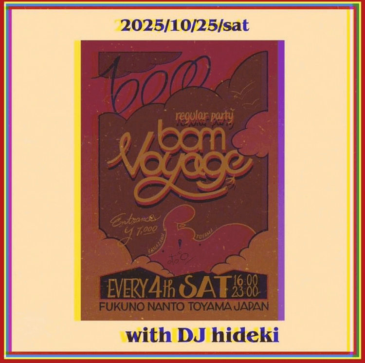 bom Voyage PARTY INFO Toyama Bar Night Party bom Voyage DAY:2025.10.25 Sat. OPEN:16:00~23:00 ENTRANCE:1,000JPY VENUE:bom