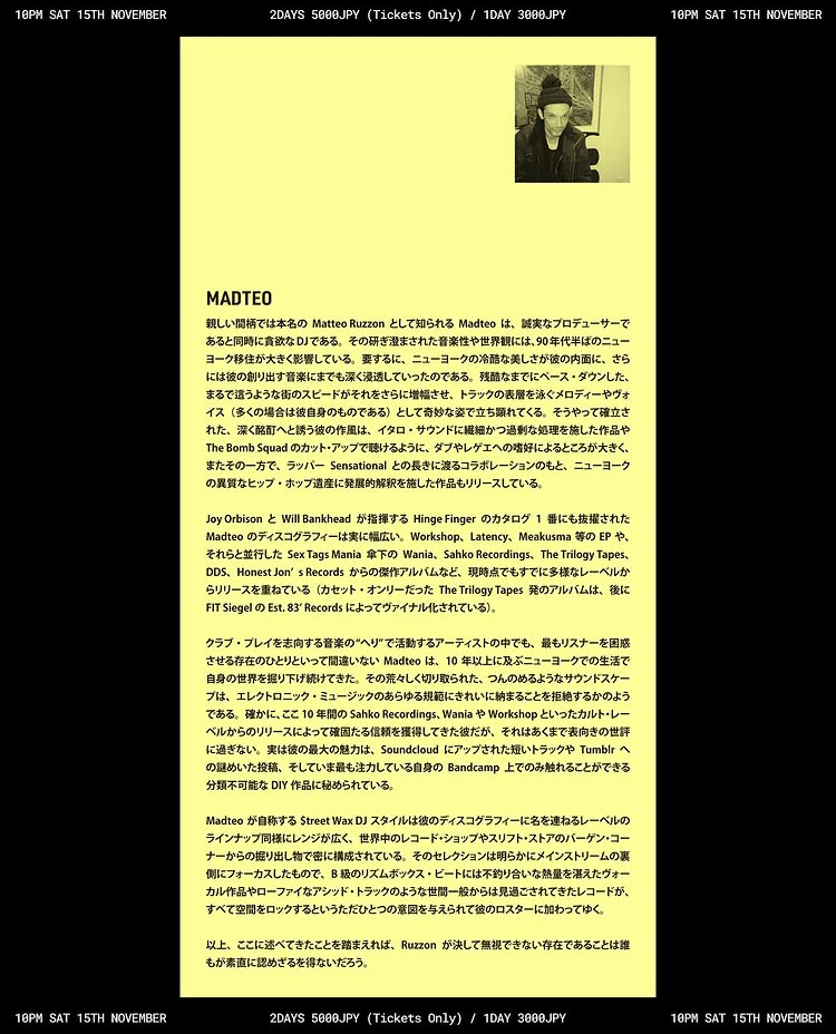 2DAYS:(11.08 & 15)5,000JPY ※Tickets Only