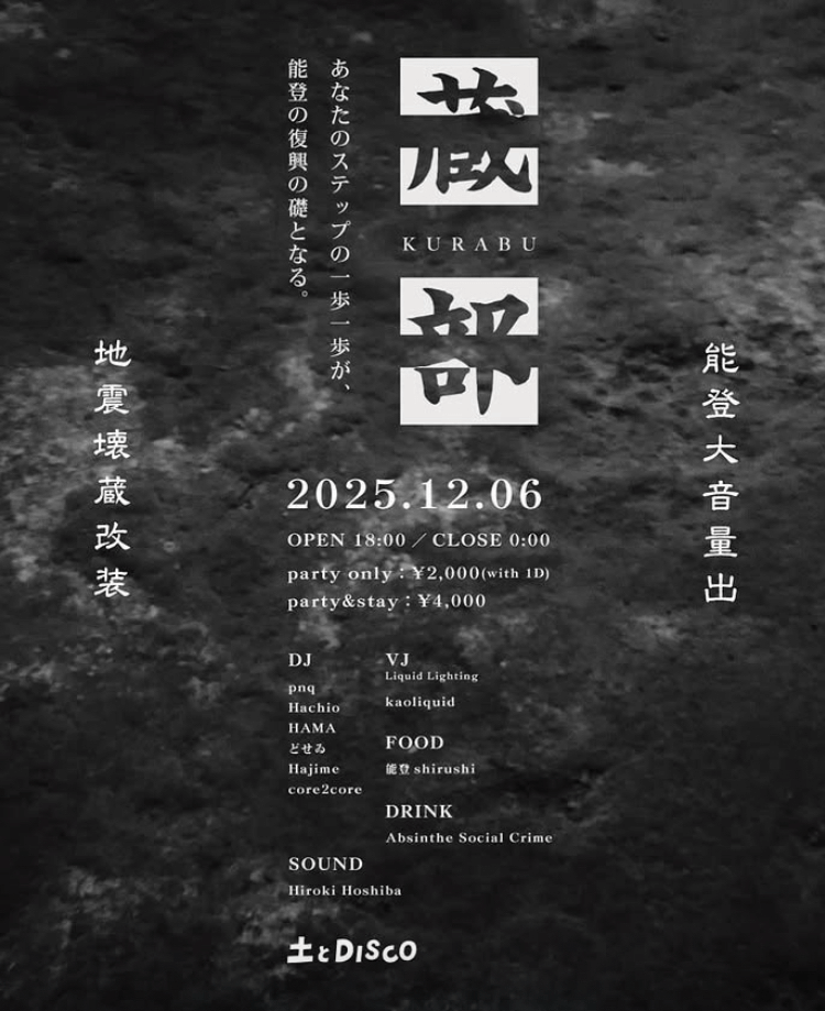 ※宿泊は寝具持参の雑魚寝(限定20名)