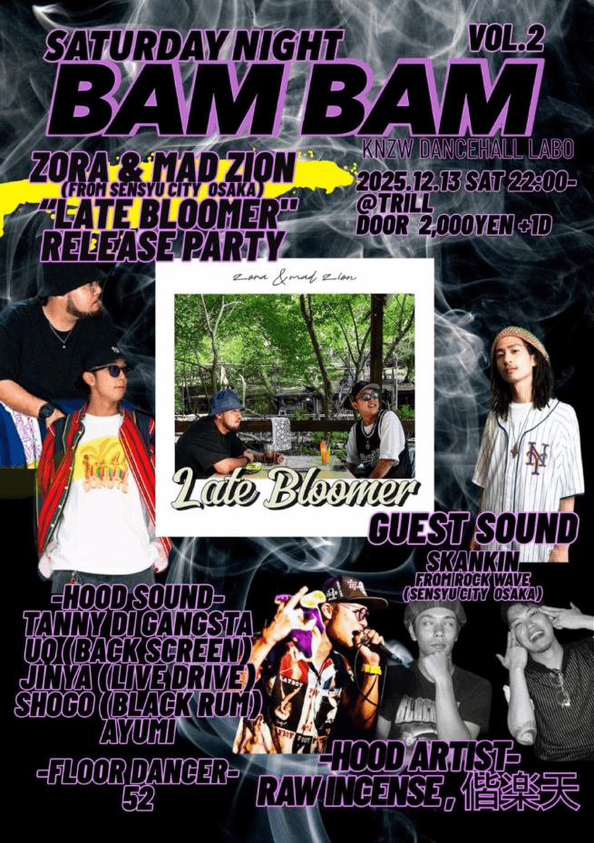 SATURDAY NIGHT BAMBAM vol.2 ZORA & MAD ZION “Late Bloomer” RELEASE PARTY