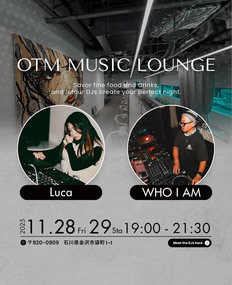 OTM MUSIC LOUNGE PARTY INFO Kanazawa Bar Night Party OTM MUSIC LOUNGE DAY:2025.11.28 Fri. OPEN:19:00~21:30 VENUE:OTM ■DJ Lower