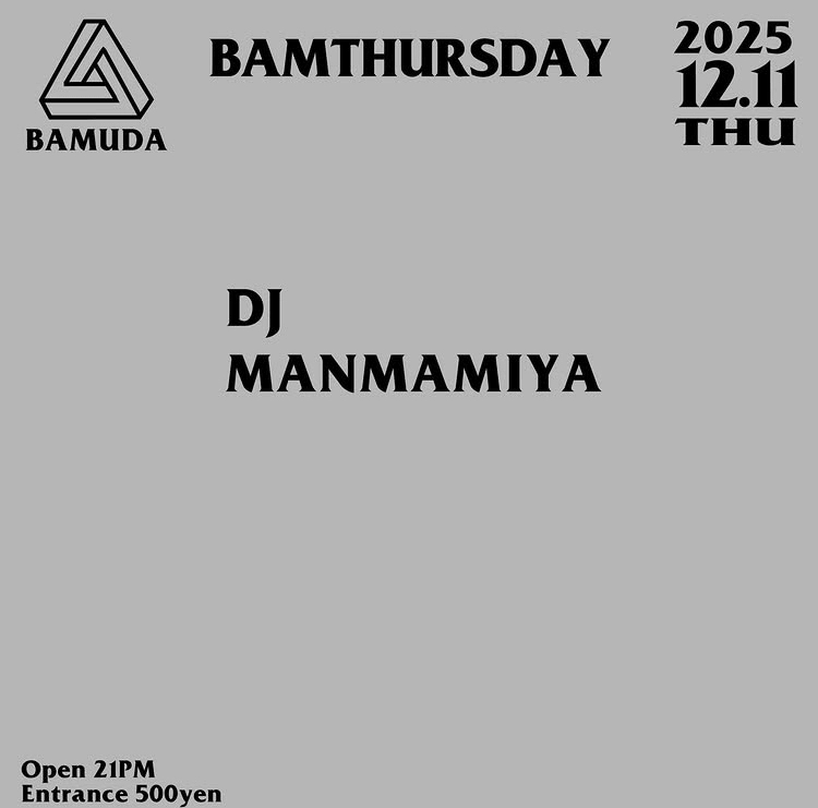 BAMTHURSDAY PARTY INFO Kanazawa Club Bar Night Party BAMTHURSDAY DAY:2025.12.11 Thu. OPEN:21:00 ENTRANCE:500JPY VENUE:BAMUDA ■DJ MAMMAMIYA