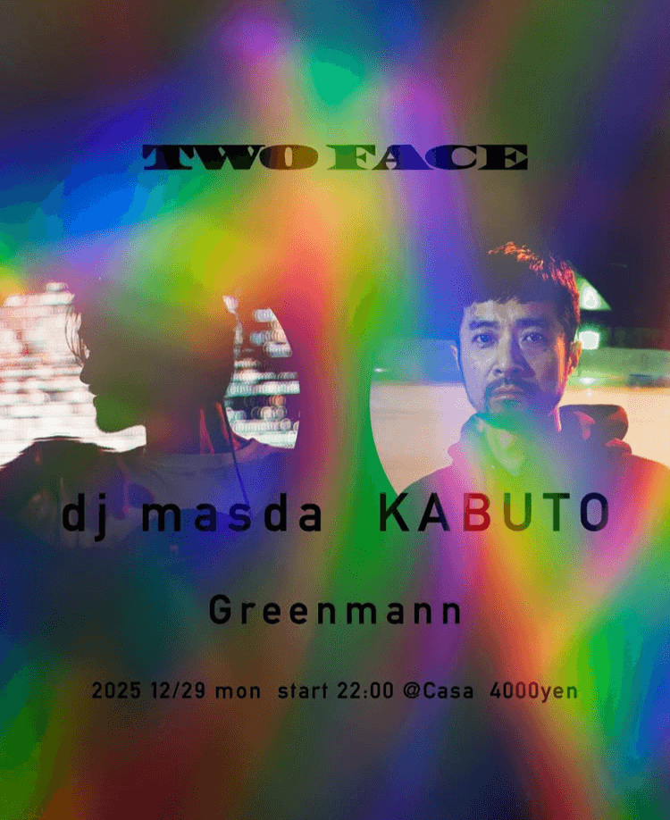 TWOFACE PARTY INFO Fukui Club Night Party TWOFACE DAY:2025.12.29 Mon. START:22:00 DOOR:4,000JPY VENUE:Casa ■DJ masda KANUTO
