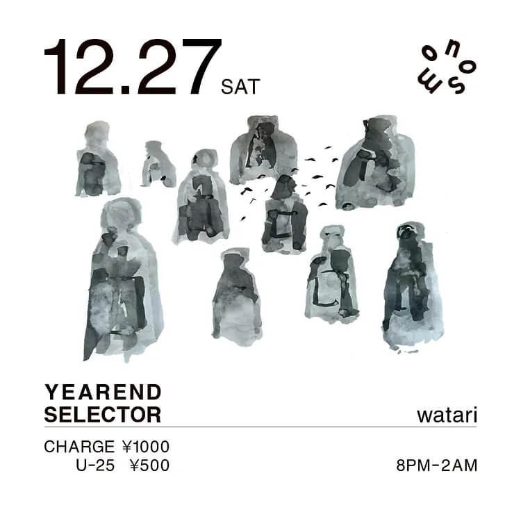 12.27/monos PARTY INFO Toyama Bar Night Party 12.27/monos DAY:2025.12.27 Sat. OPEN:20:00~02:00 CHARGE:1,000JPY U-25:500JPY VENUE:monos ■YEAR END SELECTOR watari