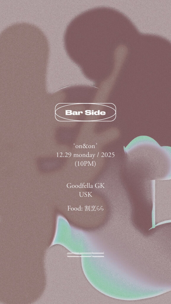 on & on PARTY INFO Kanazawa Bar Food Night Party on & on DAY:2025.12.29 Mon. OPEN:22:00 VENUE:ESŐ ■DJ Goodfella GK USK ■FOOD 割烹らら