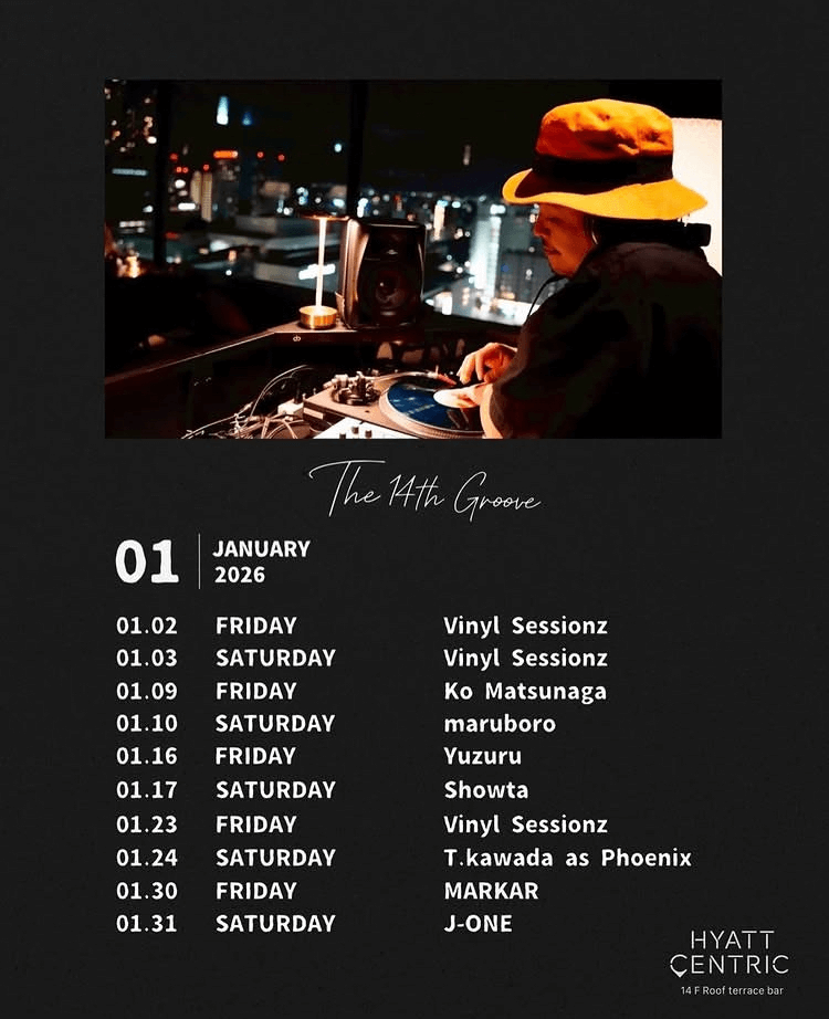 The 14th Groove PARTY INFO Kanazawa Bar Night Party The 14th Groove DAY:2026.01.31 Sat. VENUE:Hyatt Centric Kanazawa ■DJ J-ONE