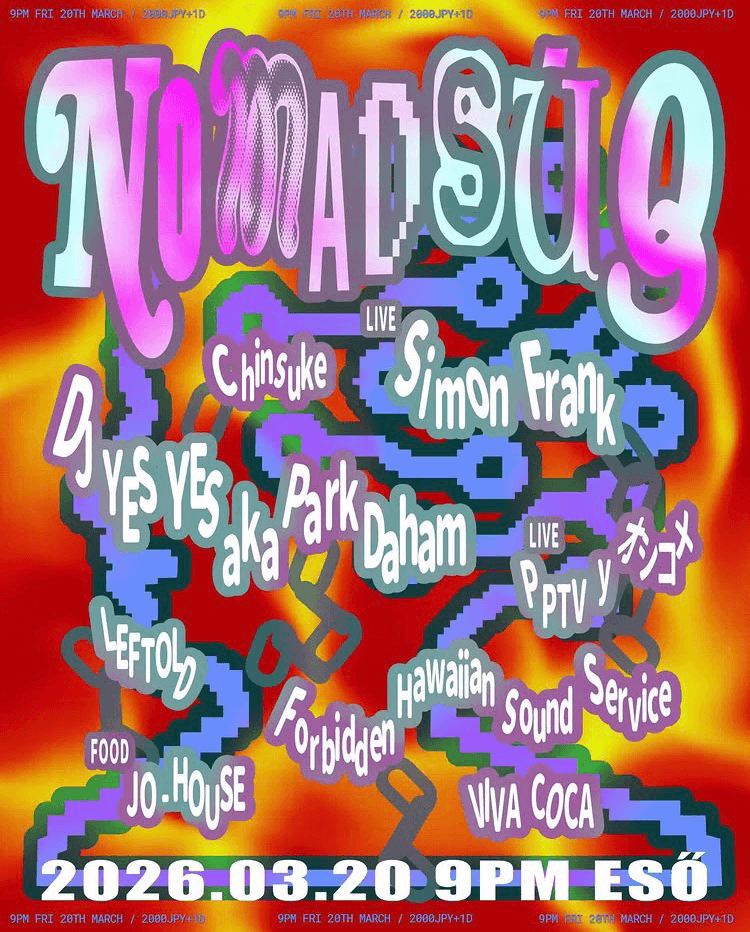 Simon Frank was born in Canada, grew up in New Delhi and Beijing, and currently lives in Shanghai. He began performing music as a high schooler, participating in the anarchic noise and experimental rock scene that took root in China’s capital around the time of the 2008 Olympics. Emerging out of experimentation with murky drones and loops inspired by Indian classical music and free improvisation, his music has gradually evolved into a unique take on post punk electronics, equal parts outsider pop and heads-down dance music. Sneered vocals straight from the minimal synth songbook get bolted to corrosive acid house bass lines, thumping drum machines, warped breakbeats, swirling masses of dub echo, and dancehall’s low-end pressure. Simon has played in bands including Hot & Cold (with his brother Josh Frank, member of Gong Gong Gong), Love Theme (with Alex Zhang Hungtai and Austin Milne), and Love Research Institute. Through his event series XMQ Presents, he has hosted performances by DJs and artists including John T. Gast, Phuong-Dan, Tolouse Low Trax, First Hate, and Yearning Kru. His most recent album, Victim of a New Age, was released in August 2025 on Tokyo producer Mars89’s label Nocturnal Technology.