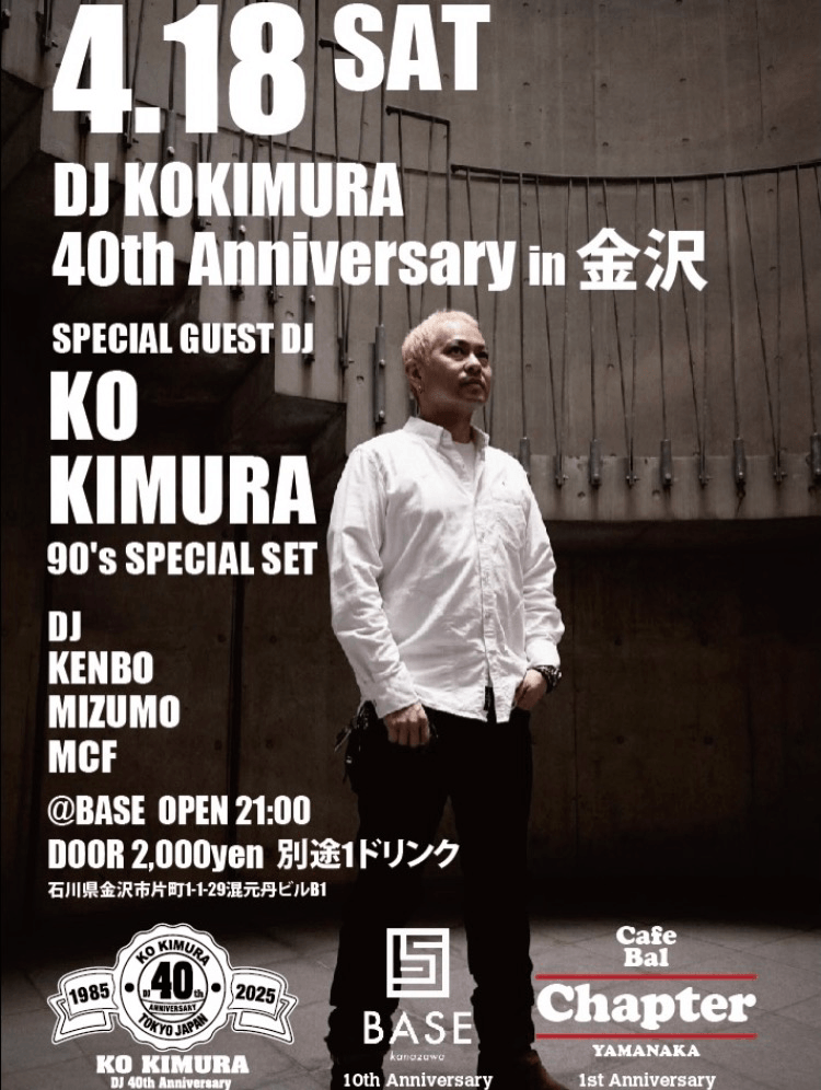 KO KIMURA DJ40th Anniversary + BASE 10th Anniversary + Chapter 1st Anniversary